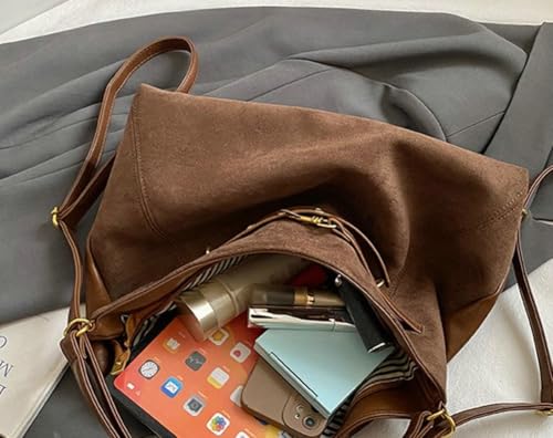 Women Vintage Suede Leather Shoulder Bag Large Bucket Tote Crossbody Handbag Classic Backpack Work Travel Dating 5