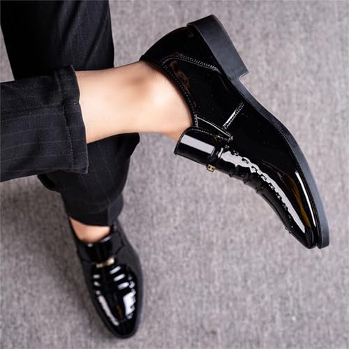 Men's Vintage High Gloss Slip On Dress Loafer Shoes Formal Business Pointed Toe Patent Leather Loafers 6