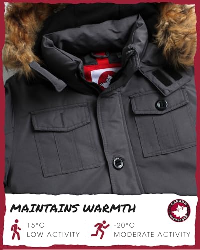 • AUTHENTIC CANADA WEATHER GEAR: Parka Design with Faux Fur Hood, Deep Pockets with Secure Zippers Parka Winter Coats for Boys; We embrace all weather and all of the traditions that come with it, providing affordable, on-trend apparel and outerwear made for cozying it up or countering the cold
