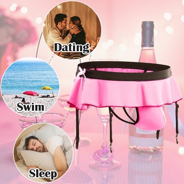 Sissy Pouch Panties for Men Crossdressers Men's Lingerie Skirt G-String Thongs Underwear Briefs with Garters 4