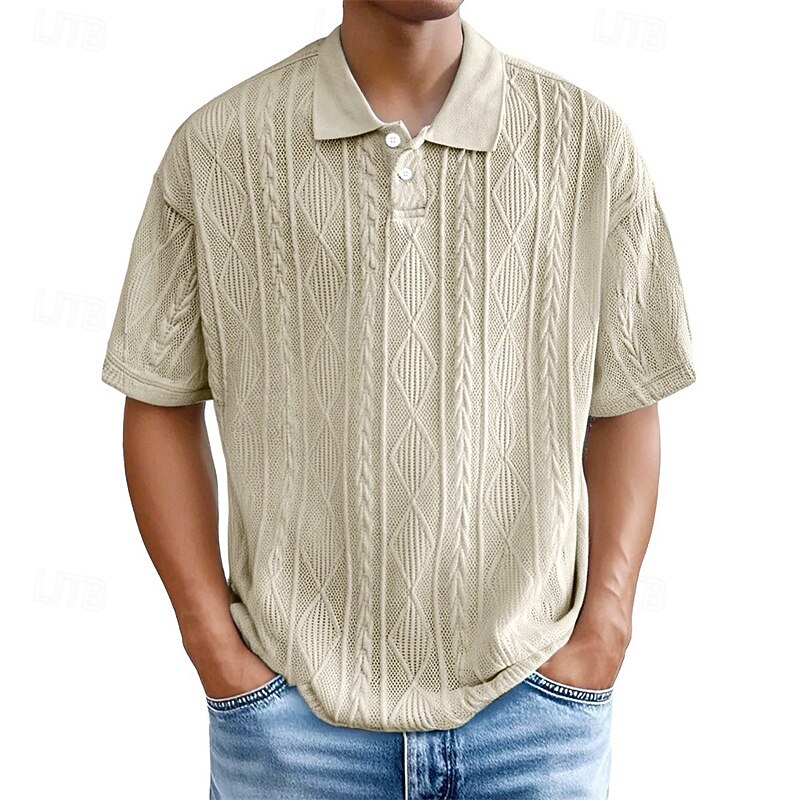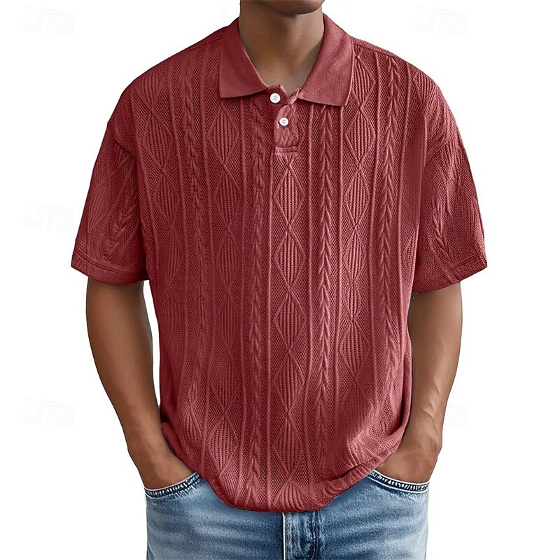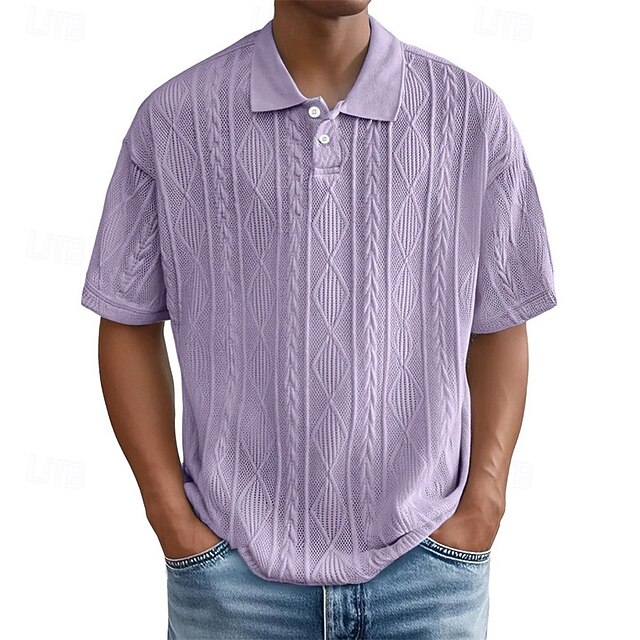 More information about Men's Golf Shirt Golf Polos Shirts Work Casual Lapel Short Sleeve Basic Modern Plain Buttons Jacquard Summer Spring Regular Fit Apricot Black White Wine Blue Purple Golf Shirt