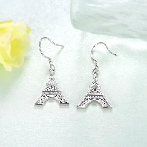 HOT ! Paris Eiffel Tower Earrings 925 Sterling Silver Eiffel Tower Earrings for Women Paris Eiffel Tower Jewelry Gifts for Women