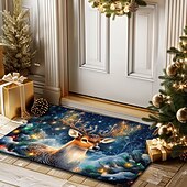 Christmas Decoration Doormat Xmas Reindeer Holly Kitchen Mat Floor Mat Non-Slip Area Rug Oil Proof Rug Indoor Outdoor Mat Bedroom Decor Bathroom Mat Entrance Rug 12