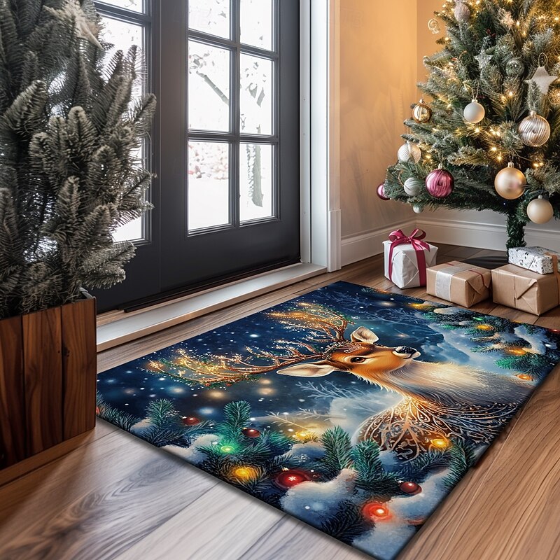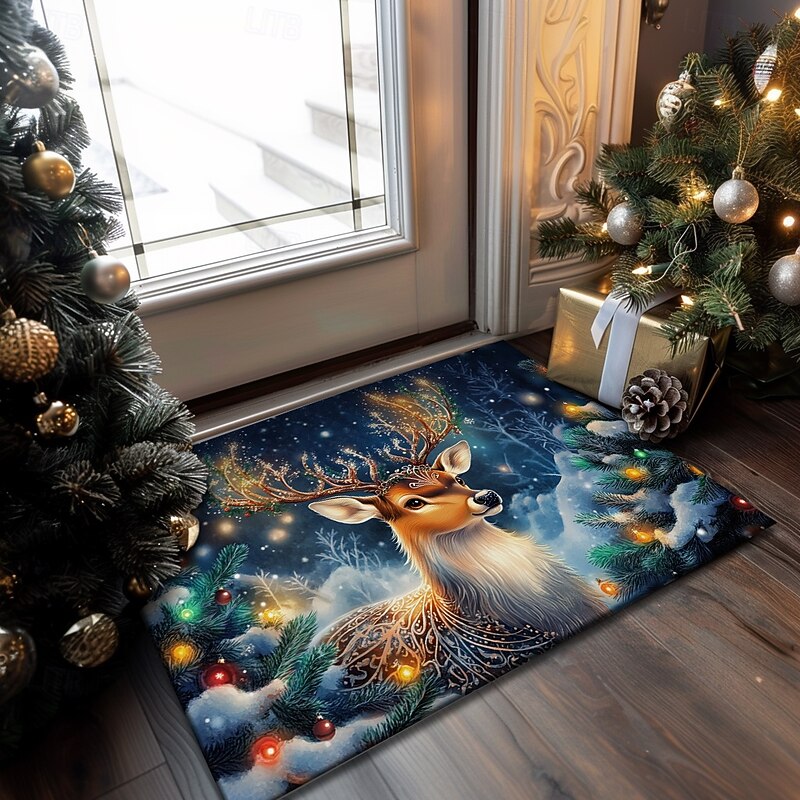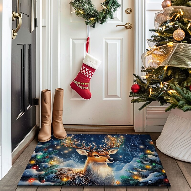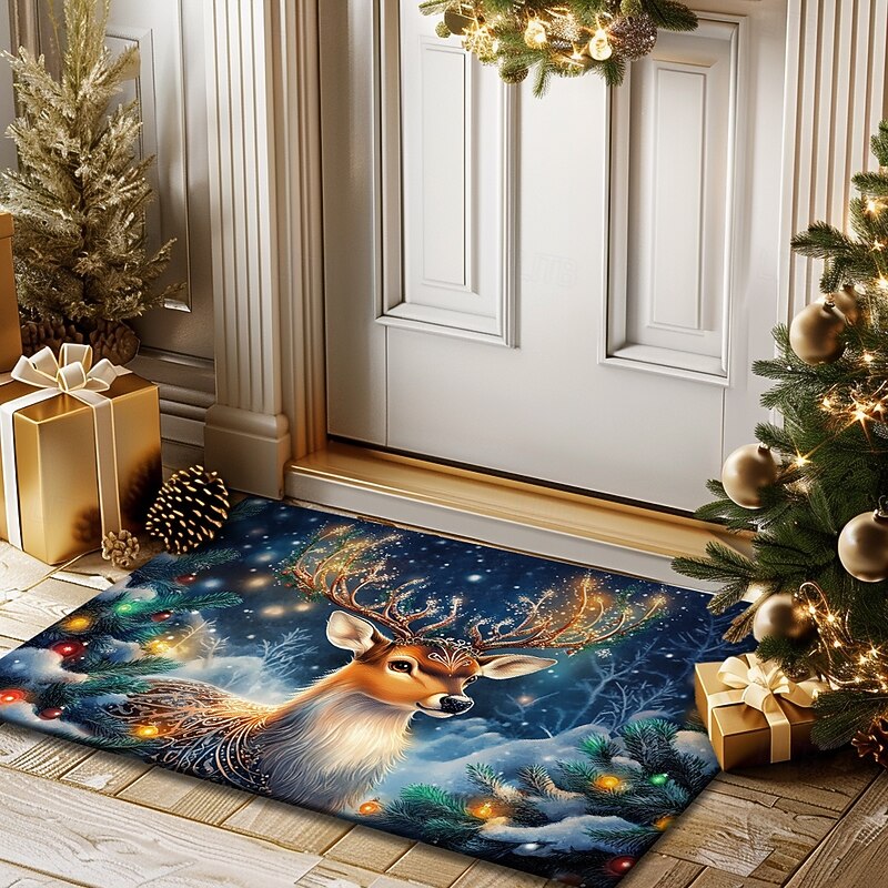 Christmas Decoration Doormat Xmas Reindeer Holly Kitchen Mat Floor Mat Non-Slip Area Rug Oil Proof Rug Indoor Outdoor Mat Bedroom Decor Bathroom Mat Entrance Rug 7