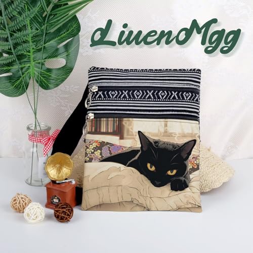 Black Cat Messenger Bag Small Ethnic Pattern Printed Adjustable Strap Crossbody Zipper Bag Black Cat Phone Bag Wallet Cute Shoulder Handbag for Women - 5 6