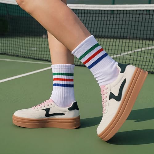• Unique Platform Sneakers: These womens sneakers are refreshed with a 1.77" triple-stacked TPR outsole to elevate your style for an effortlessly chic look. Also these trendy fashion sneakers suit for exploring city streets and relaxed outings in style.