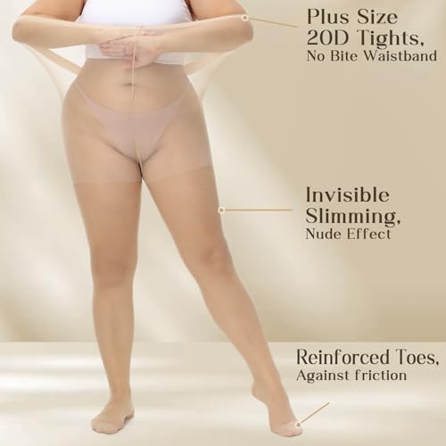 CASMON 3 Pairs Plus Size Sheer Tights for Women, High-waist 20D Pantyhose Control Top with Reinforced Toe for Daily(XL-4XL) 6