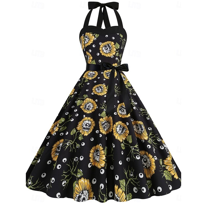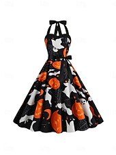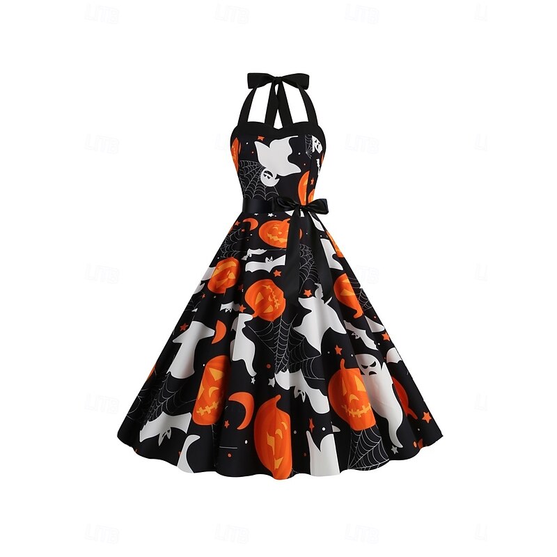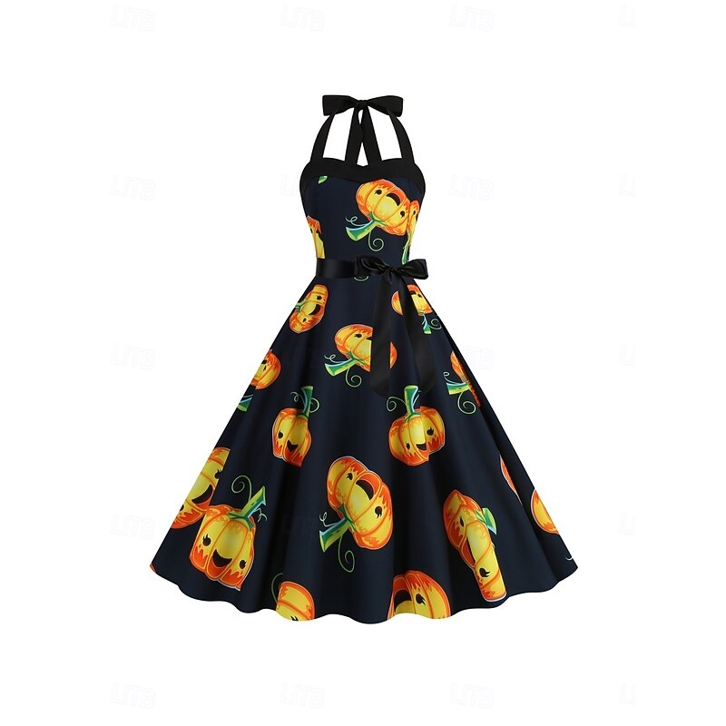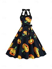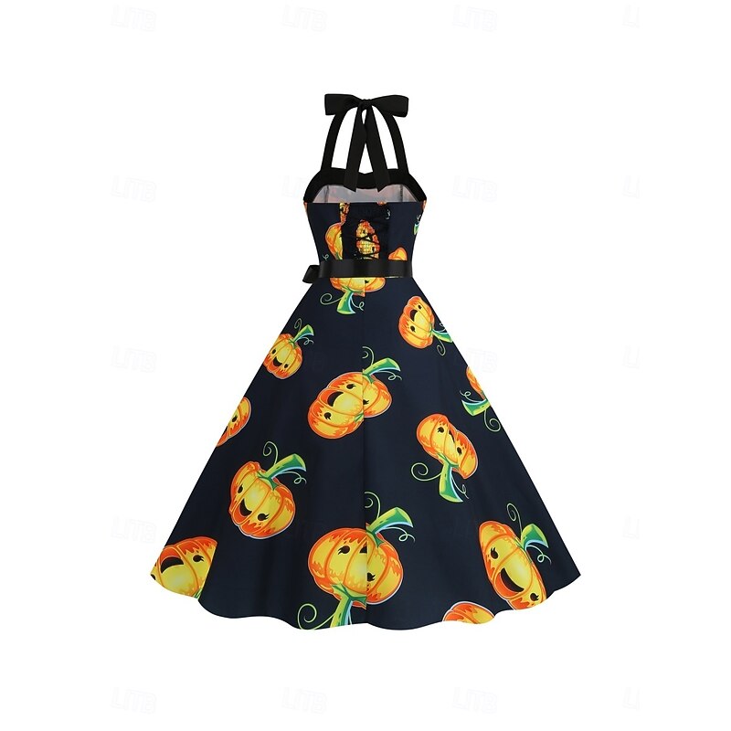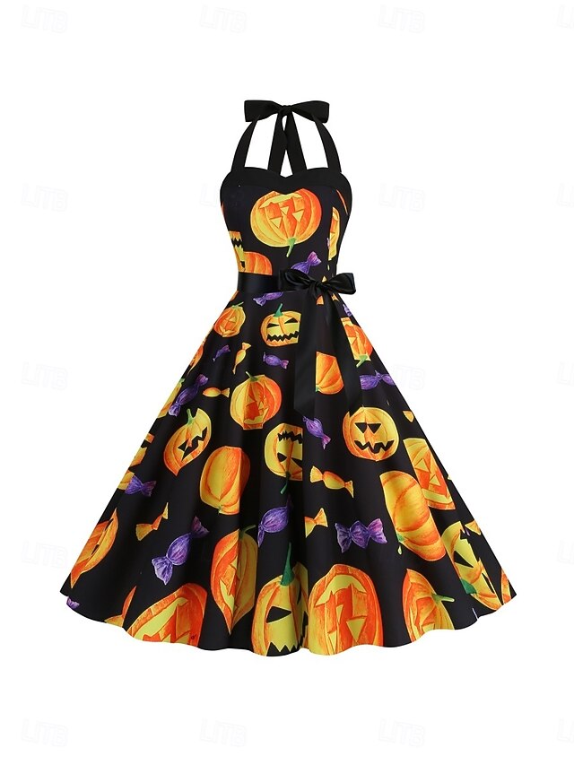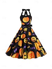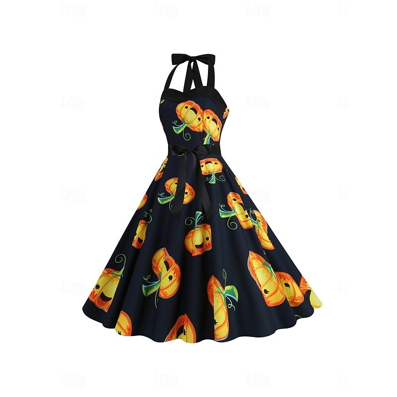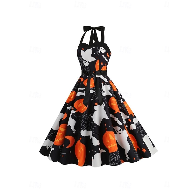 More information about Halloween Women's Pumpkin Print Midi Dress A Line Dress Vacation Casual Daily Holiday Regular Fit Pumpkin Spider Sleeveless Halter Neck Dark Yellow Black Yellow Orange Summer Spring Fall