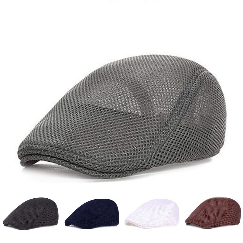 Men's Flat Cap Black White Cotton Mesh Streetwear Stylish 1920s Fashion Outdoor Daily Going out Plain Breathability 12