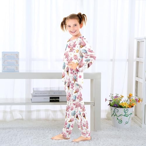 Pink Axolotls Ice Cream Cute Soft Pajama Set for All Seasons,Breathable Pjs Long Sleeve Sleepwear,Comfy Loungewear 2 Piece Underwear Set 3T 6