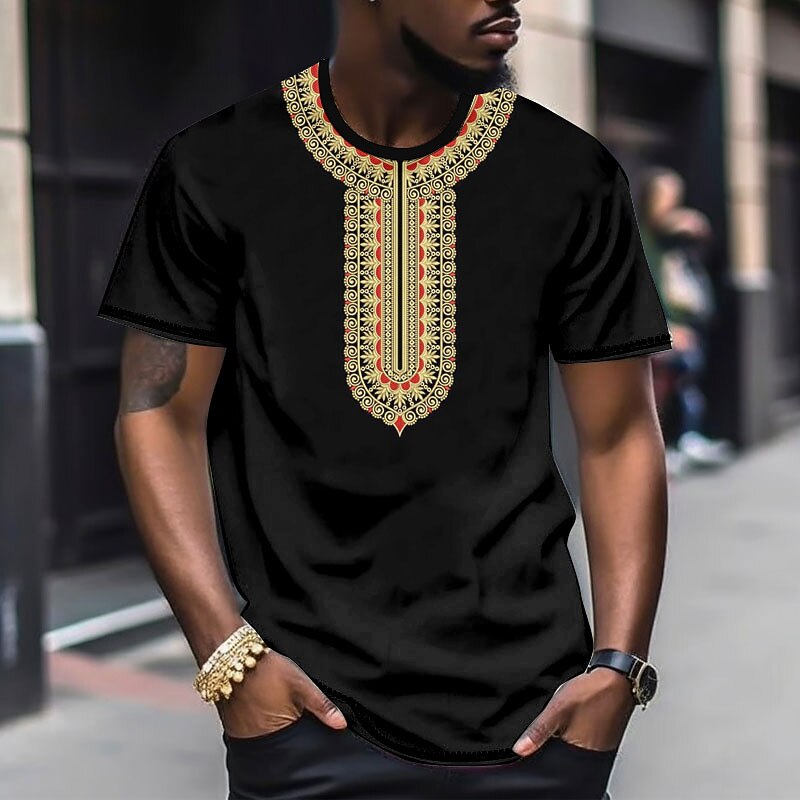 More information about Men's Graphic Color Block Tribal T Shirt Short Sleeve T shirt 3D Print Crew Neck Shirt Fashion Designer Ethnic Outdoor Daily Sports Black and Red Black White Spring & Summer Clothing Apparel S M L XL