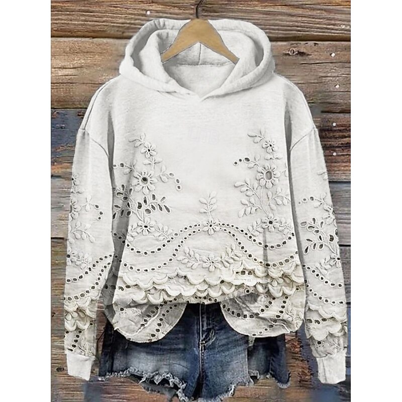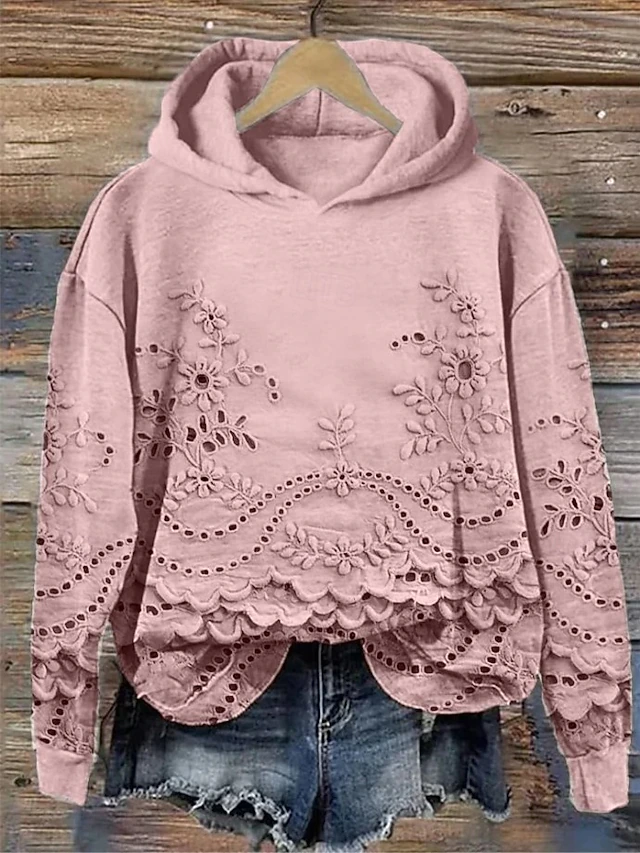 More information about Women's Hoodie Pullover Sweatshirt Oversized Long Sleeve Casual Graphic Floral Warm Fashion Hooded Regular Tops Street Dailywear Print White Pink Blue Purple Green Fall Winter