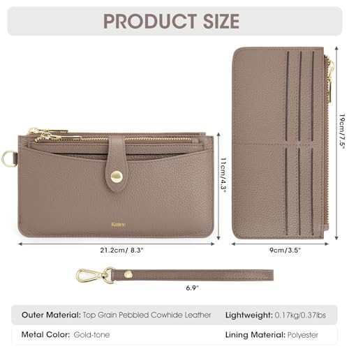 • Premium Leather: Leather wallets for women are made from excellent Top Grain Pebbled Cowhide leather with a textured finish,and features durable Gold hardware. This small wristlet wallets for women offers both durability and stylish look