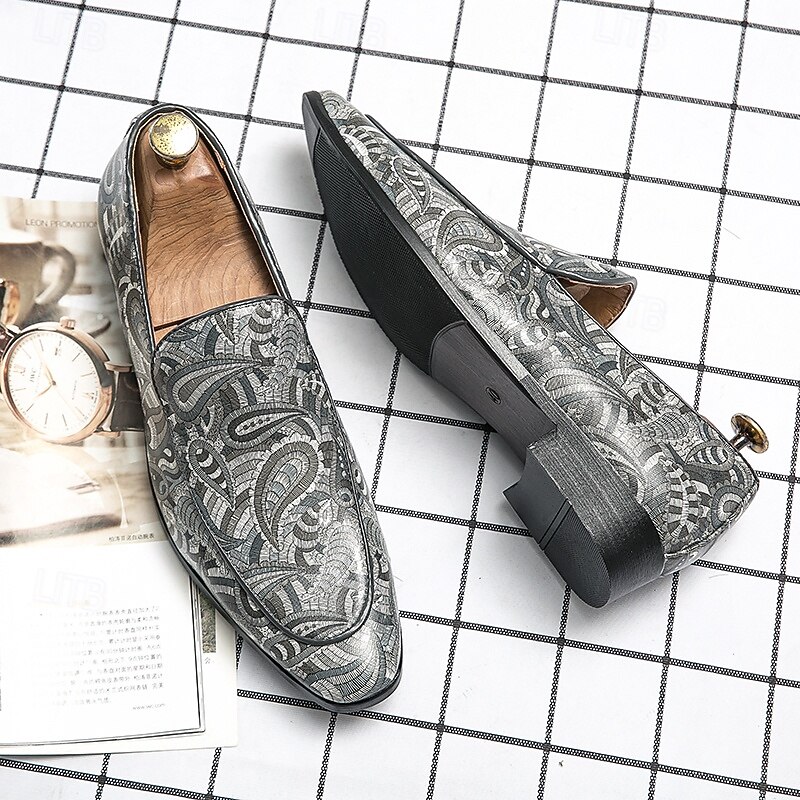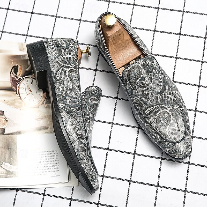 HOT ! Men's Faux Leather Loafers with Colorful Paisley Pattern – Stylish Slip-On Shoes for Formal and Casual Occasions