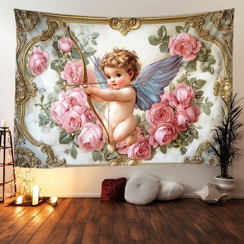 Wedding Decorations Backdrop Photograph Wall Hanging Large Tapestry Art Mural Decor Blanket Curtain Home Bedroom Living Room Decoration Cupido Love 13