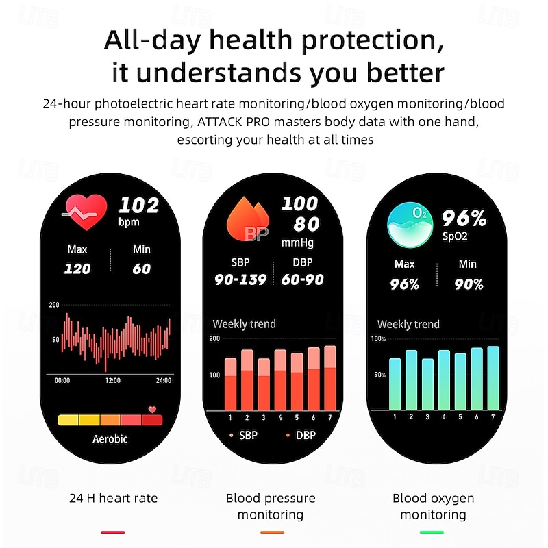 LOKMAT ATTACK PRO Smart Watch 1.32 inch Smartwatch Fitness Running Watch Bluetooth Pedometer Call Reminder Sleep Tracker Compatible with Android iOS Women Men Long Standby Hands-Free Calls Waterproof 13
