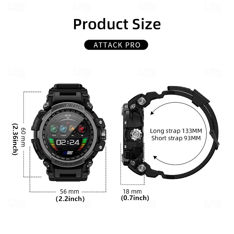 More information about LOKMAT ATTACK PRO Smart Watch 1.32 inch Smartwatch Fitness Running Watch Bluetooth Pedometer Call Reminder Sleep Tracker Compatible with Android iOS Women Men Long Standby Hands-Free Calls Waterproof