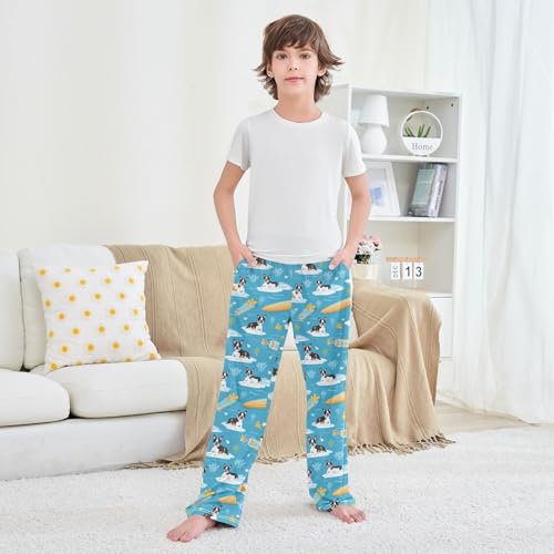 Bulldog on Skateboard Beach Pajamas Bottoms with Pockets Comfy Pjs Sleepwear Elastic Waistband Pajamas Pants Lounge Pants for 6-14 Years 7