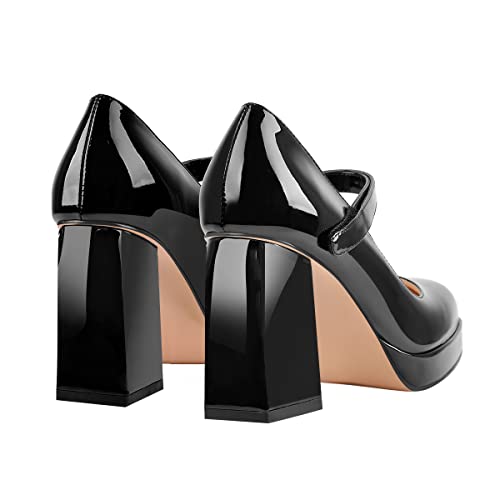 Mary Jane Square Platform Ankle Strap Chunky Heels Pumps 4