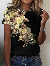 Women's T Shirt Basic Floral Print Short Sleeve Regular Tops Round Neck Holiday Weekend Yellow Pink Blue 10