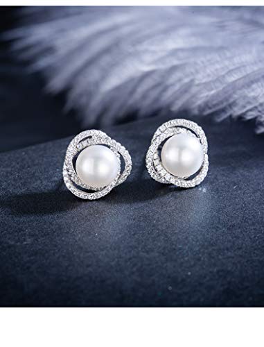 Gold Plated Sterling Silver Twist Freshwater Pearl Stud Earrings for Women Gift 4