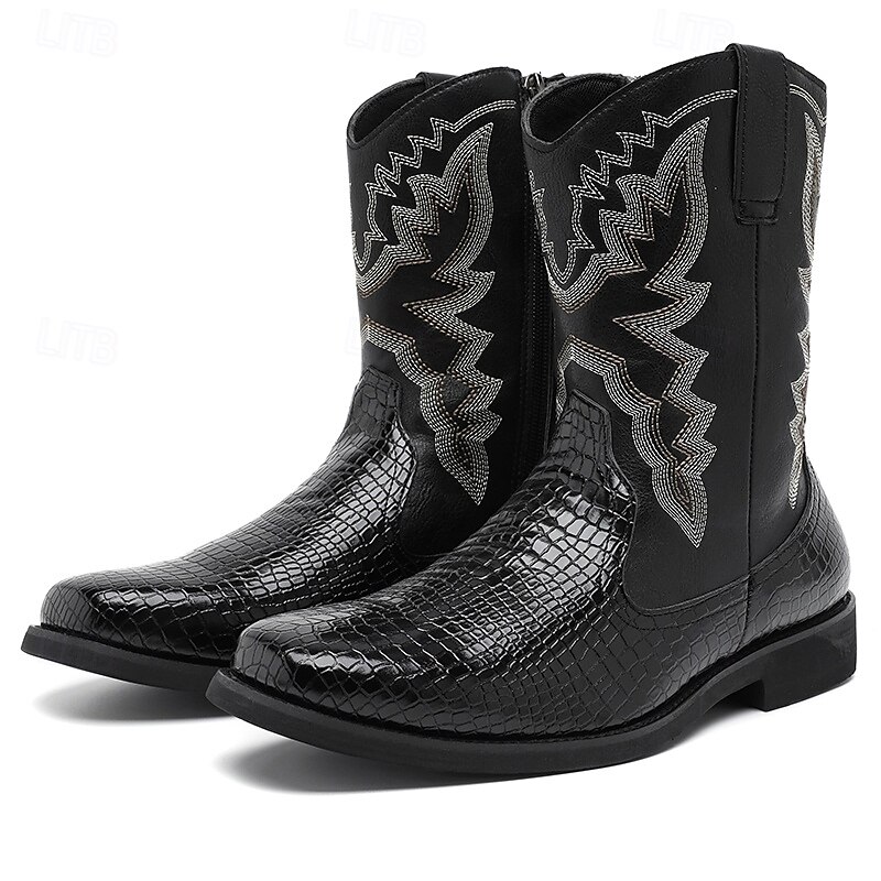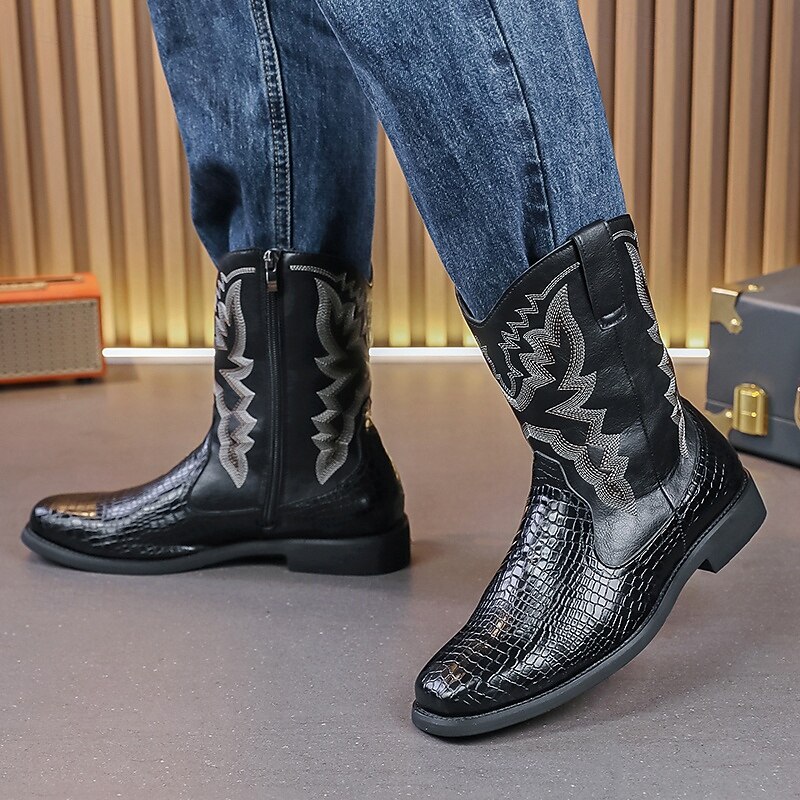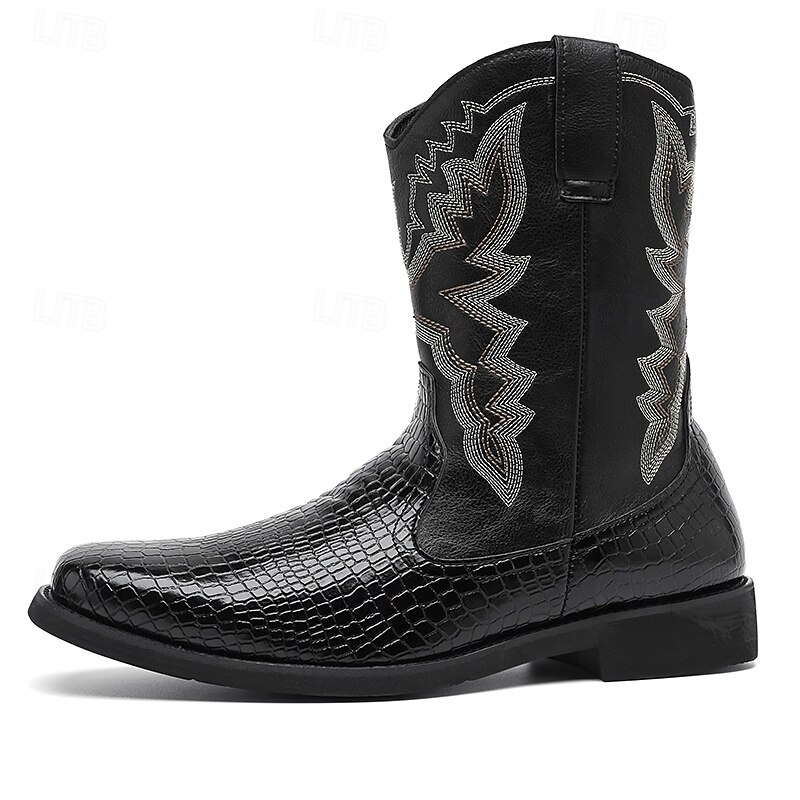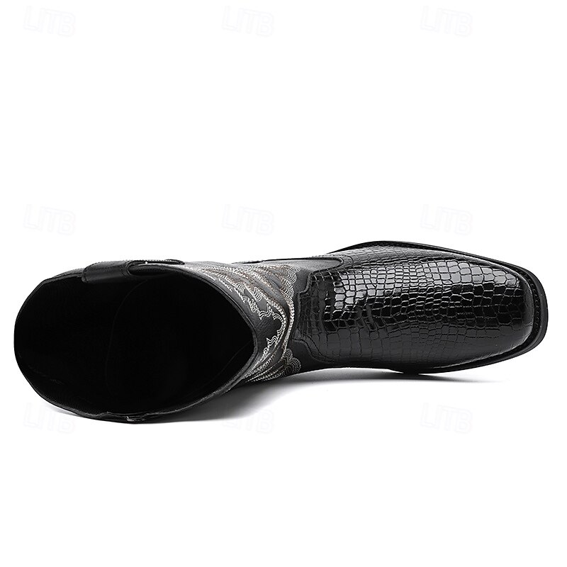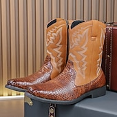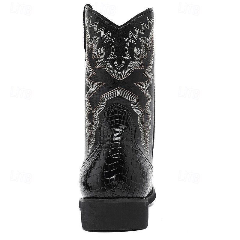 More information about Men's Brown and Crocodile Print Western Cowboy Boots with Embroidered Details, Square Toe, Durable Outsole, Stylish Rodeo Footwear for Horse Riding, Line Dancing, Country Weddings and Outdoor Events