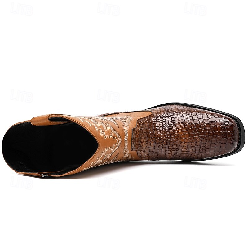 Men's Brown and Crocodile Print Western Cowboy Boots with Embroidered Details, Square Toe, Durable Outsole, Stylish Rodeo Footwear for Horse Riding, Line Dancing, Country Weddings and Outdoor Events 4