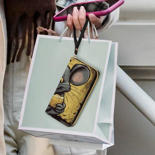 Rat Eats A Piece of Cheese Leather Wallet Smooth Zip Around Clutch Wristlet Travel Long Soft Purse for Women 1