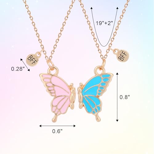 • 【Adjustable length】The bff necklace is 17 inches long with a 2-inch extension chain, best friend necklaces for 2 is convenient and free to adjust to your neck. The butterfly pendant of bff necklaces measures 1.2 x 0.8 inches, which is delicate and eye-catching