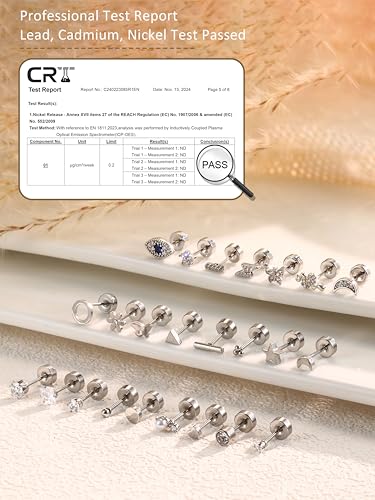 • Hypoallergenic Surgical Steel Earrings:316L Stainless steel earrings for women,flat back earrings hypoallergenic, authoritative testing,lead & nickel free,non irritation,hypoallergenic earrings for sensitive ears.High electroplating color retention process,high polished smooth surface,flat back earrings non tarnish.Not easy to fall off,24/7 wear gold cartilage earring.