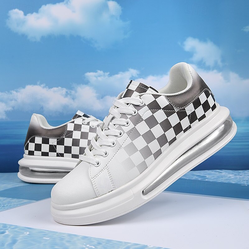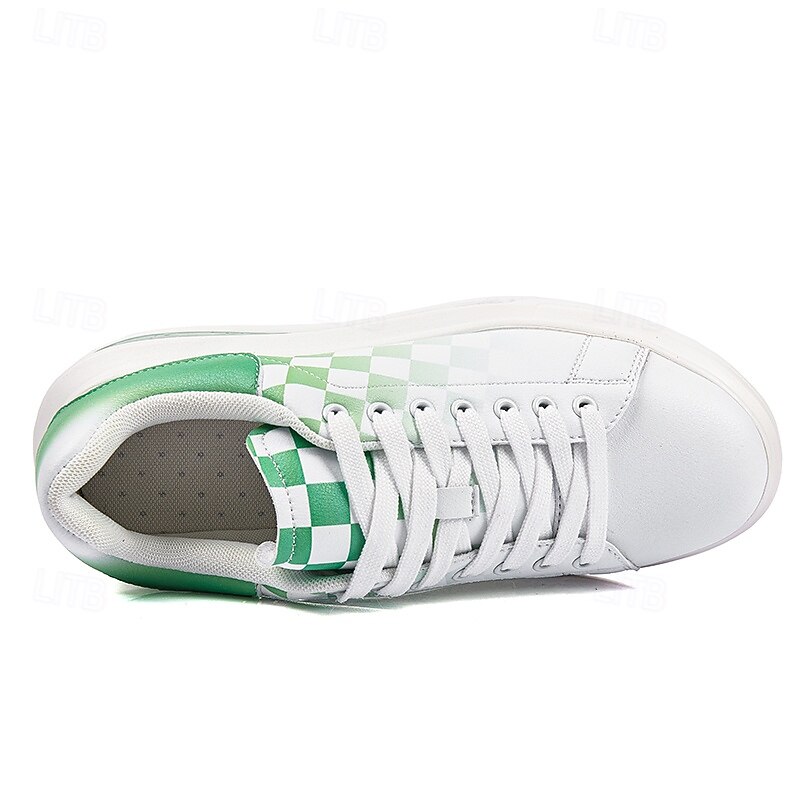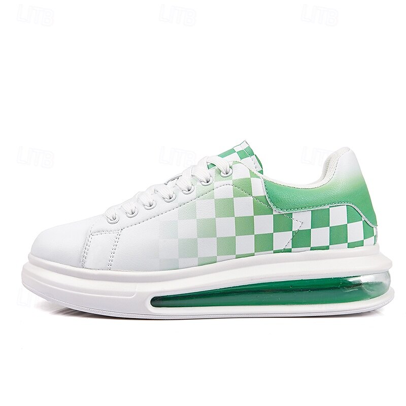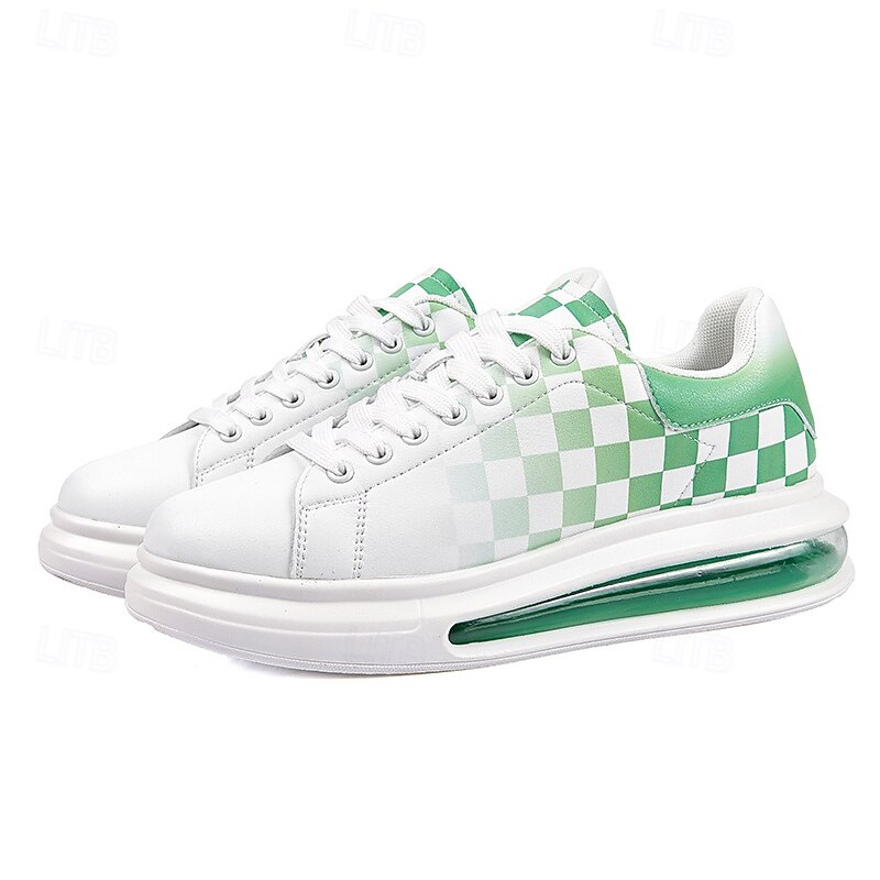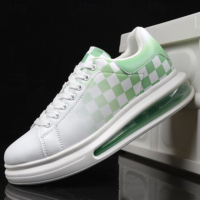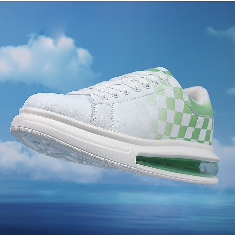 Trendy Men's White and Green Plaid Sneakers with Cushioned Sole - Stylish Spring and Summer Casual Shoes 6