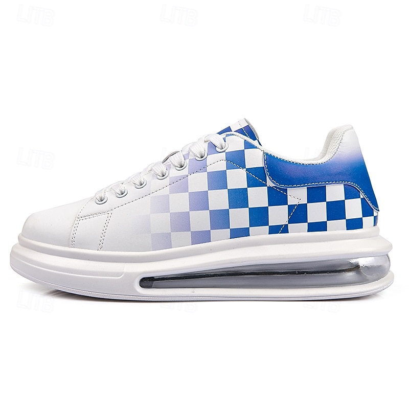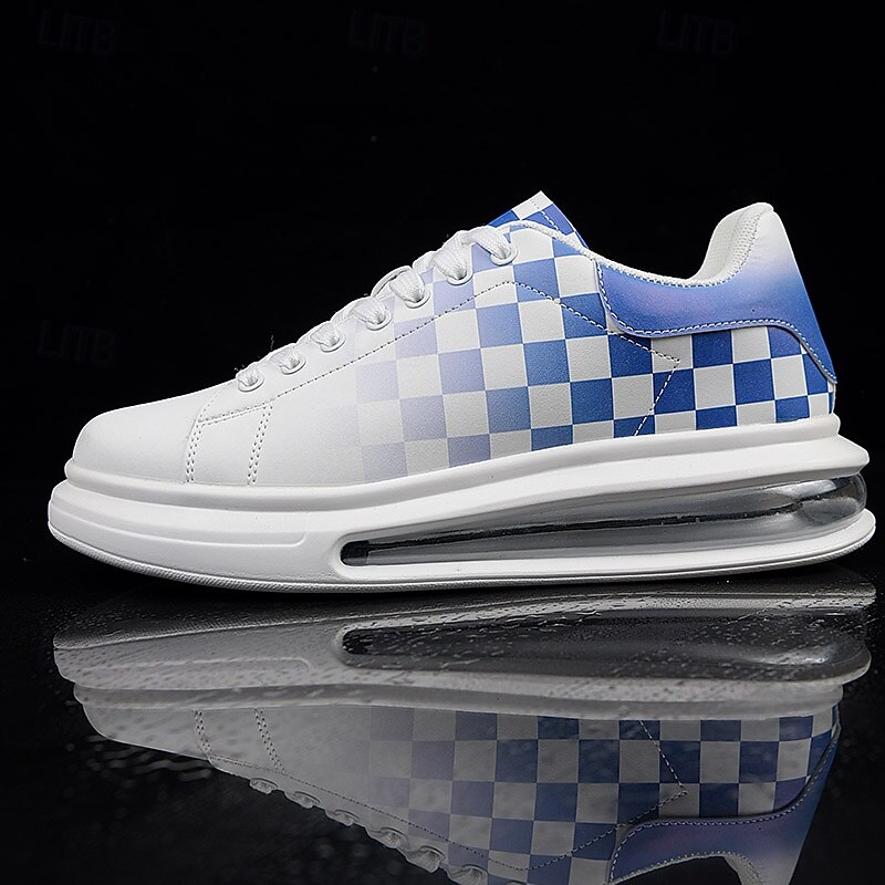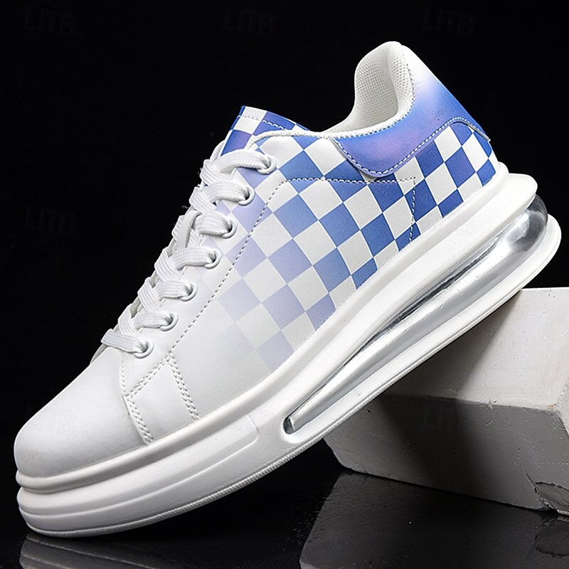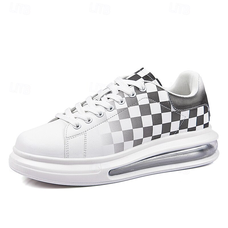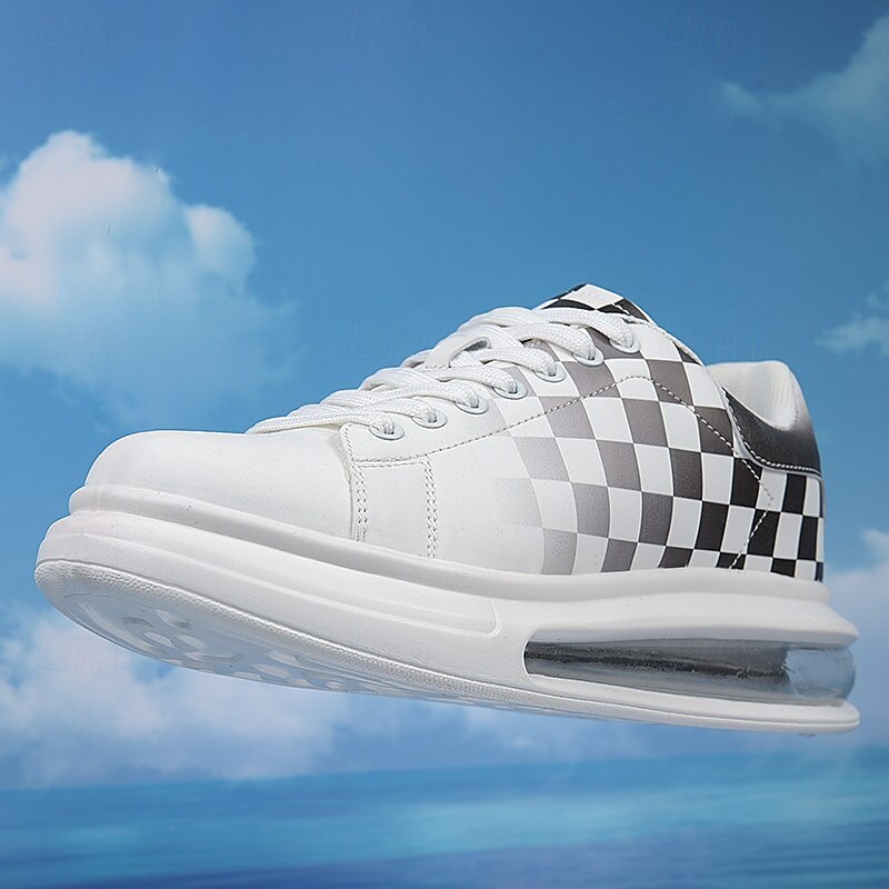 Trendy Men's White and Green Plaid Sneakers with Cushioned Sole - Stylish Spring and Summer Casual Shoes 6