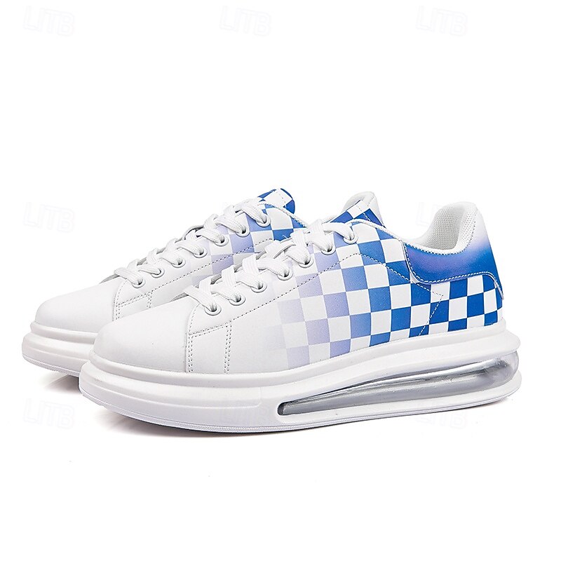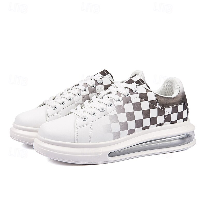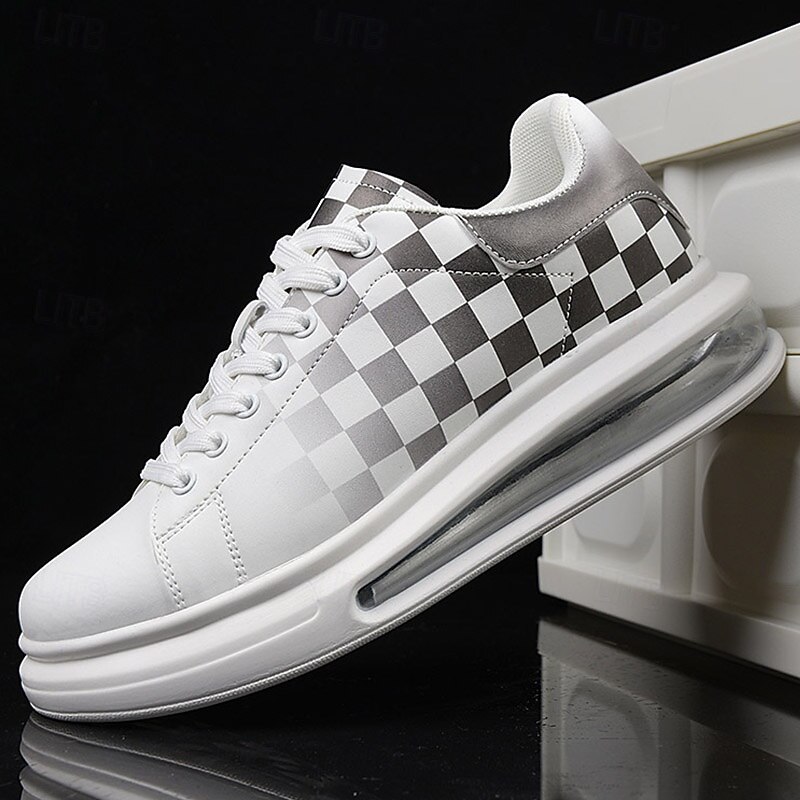 More information about Trendy Men's White and Green Plaid Sneakers with Cushioned Sole - Stylish Spring and Summer Casual Shoes