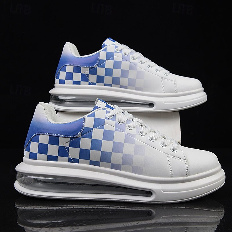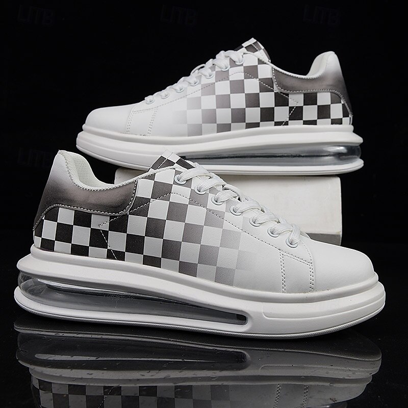 HOT ! Trendy Men's White and Green Plaid Sneakers with Cushioned Sole - Stylish Spring and Summer Casual Shoes
