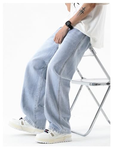 HOT ! Jeans Pants Trousers Denim Men's Port Style High Street Wide Leg Trendy Floor Washed Drawstring Rubber Men