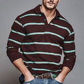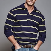 More information about Men's Horizontal Stripes Rugby Polo Long Sleeve Polo Shirts Collared Shirts Sportswear Casual School Outdoor Athleisure 3D Print Spring Fall Winter Yellow Blue Brown