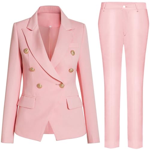 Mi Bo Tong Womens 2 PC Office Lady Suit Double Breasted Business Suit Jacket Pants Suit for Work Professional 2
