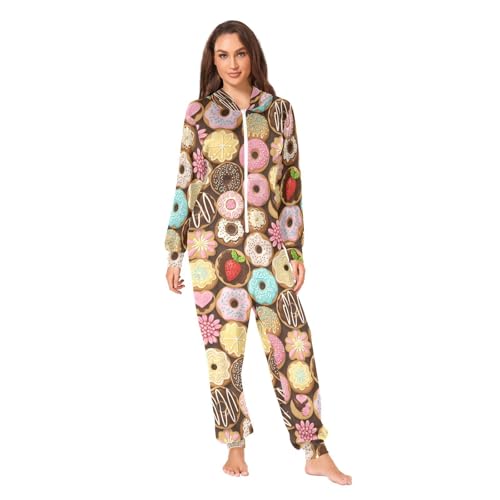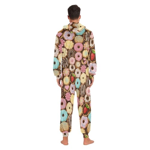 Adult Onesie Pajamas for Women Men Colorful Donuts with Various Toppings Costume Hooded Sleepwear Homewear S-XL 1
