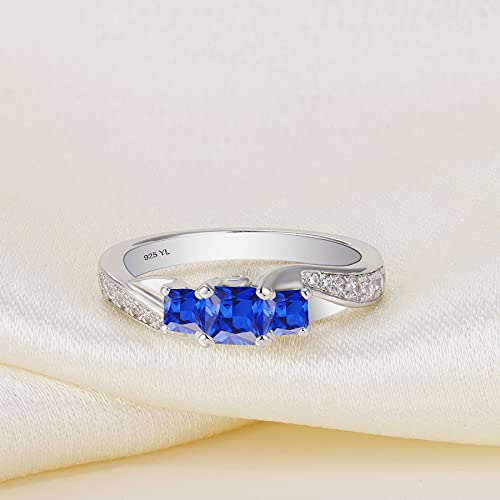 YL Women's Sterling Silver Clear Created Sapphire 3-stone Princess Cut Wedding Rings for Engagement Jewelry-size6 5