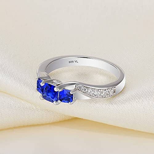 HOT ! YL Women's Sterling Silver Clear Created Sapphire 3-stone Princess Cut Wedding Rings for Engagement Jewelry-size6