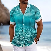 Men's Seawater Summer Hawaiian Shirt Aloha Shirt Short Sleeve Hawaiian Beach Vacation Beach Summer Spring Turndown Button Up Blue 2# Blue 1# Blue 3