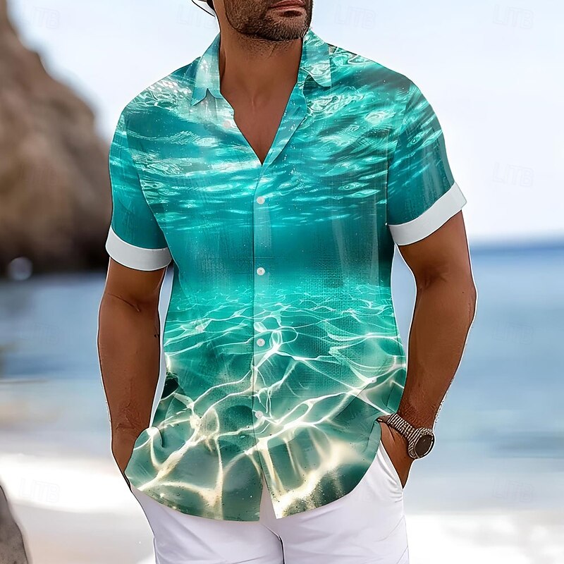 Men's Seawater Summer Hawaiian Shirt Aloha Shirt Short Sleeve Hawaiian Beach Vacation Beach Summer Spring Turndown Button Up Blue 2# Blue 1# Blue 5