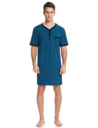 HOT ! Enjoyoself Men's Nightshirt Nightwear Comfort Cotton Sleep Shirt Henley Short Sleeve Lounge Sleepwear