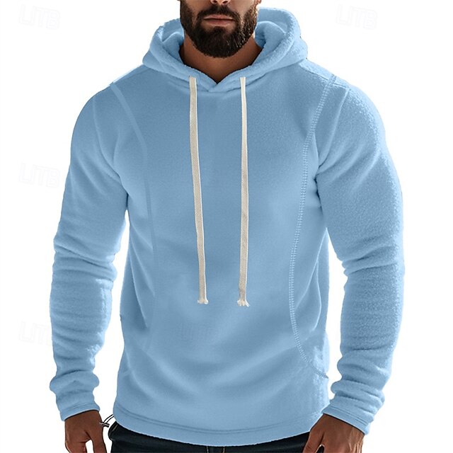 More information about Men's Hoodie Polar Fleece Black Army Green Khaki Dark Gray Light Blue Hooded Plain Drawstring Sports & Outdoor Daily Holiday Polyester Streetwear Basic Casual Fall Winter Clothing Apparel Hoodies