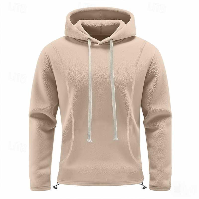 Men's Hoodie Polar Fleece Black Army Green Khaki Dark Gray Light Blue Hooded Plain Drawstring Sports & Outdoor Daily Holiday Polyester Streetwear Basic Casual Fall Winter Clothing Apparel Hoodies 13