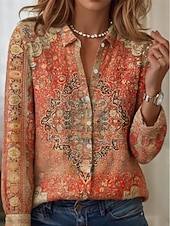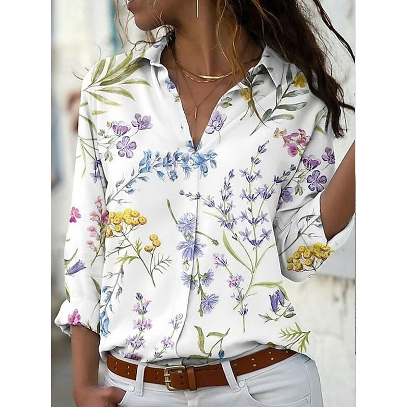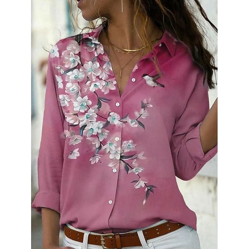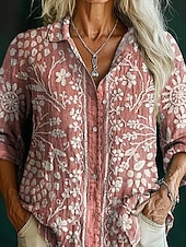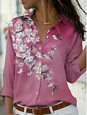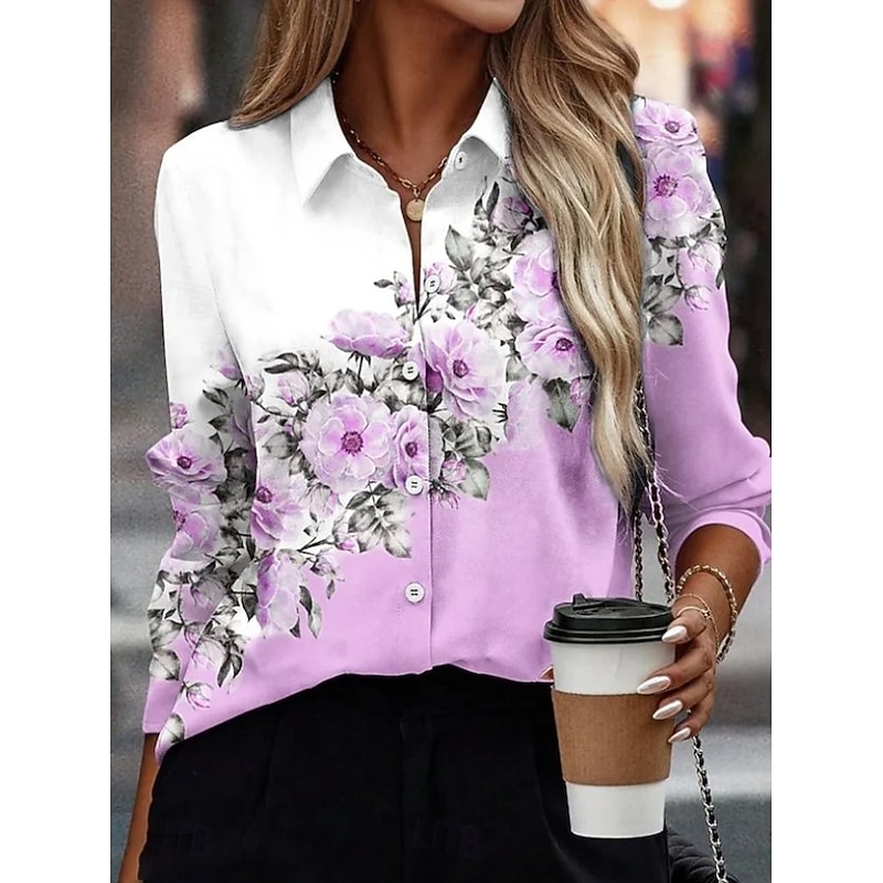 More information about Women's Shirt Floral Graphic Elegant Bohemia Daily Long Sleeve Shirt Collar Regular Tops Daily Holiday Buttons Print White Pink Light Purple Purple Orange Spring Fall Winter