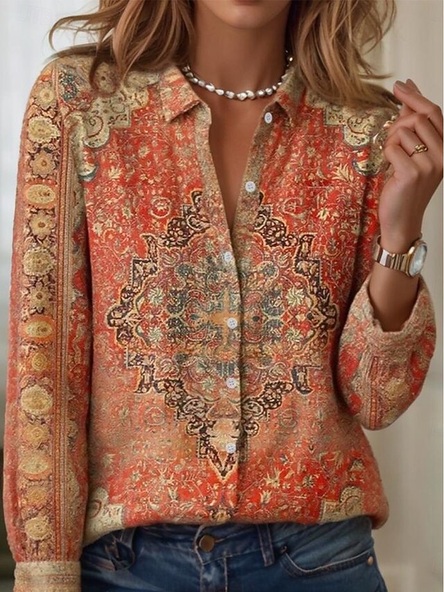 HOT ! Women's Shirt Floral Graphic Elegant Bohemia Daily Long Sleeve Shirt Collar Regular Tops Daily Holiday Buttons Print White Pink Light Purple Purple Orange Spring Fall Winter
