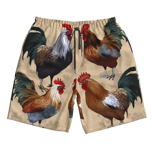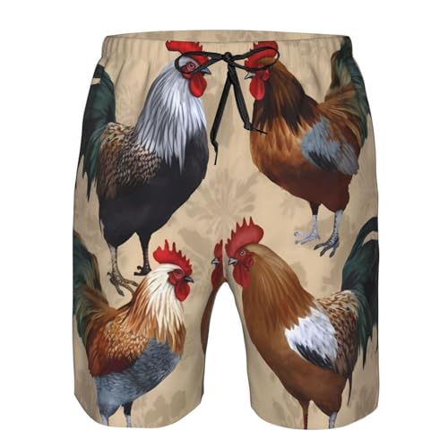 • Rooster and Chicken Print Printed Swim Trunks for Men: These surf shorts can be worn in and out of the water during summer vacation. Our Men's Sweat Shorts Swimsuits using dye-sublimation technology that allows graphics lifelike, vibrant colors and comfy material will bring you a cool summer