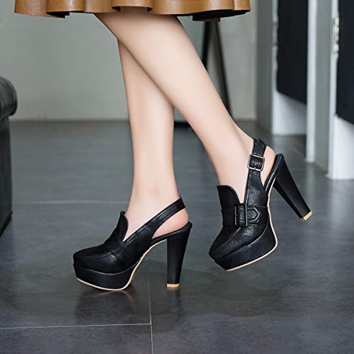 • ☆★☆Retro High Heels Platform Chunky Loafers Pumps: Women's Summer Platform Sandals Shoes Ankle Strap feature 4"/11cm ultra high block heel with 1.5"/3.5cm platform, will greatly Lengthen your legs and Moderate the slope. Platform Loafer Pumps Chunky Block High Heels adopt adjustable buckles straps to make your wearing much Convenient & Comfortable. Women Black Chunky Heel Pumps Round Toe are in backless design, can Free your heels greatly.