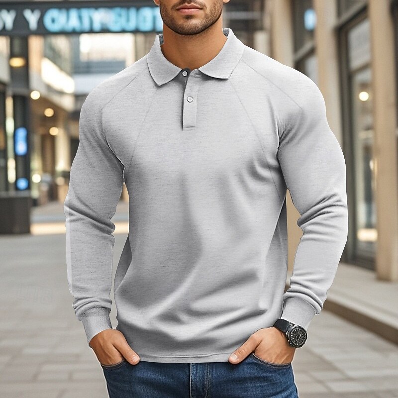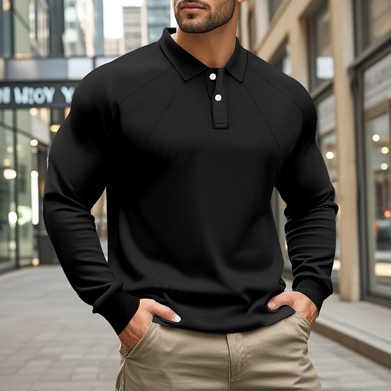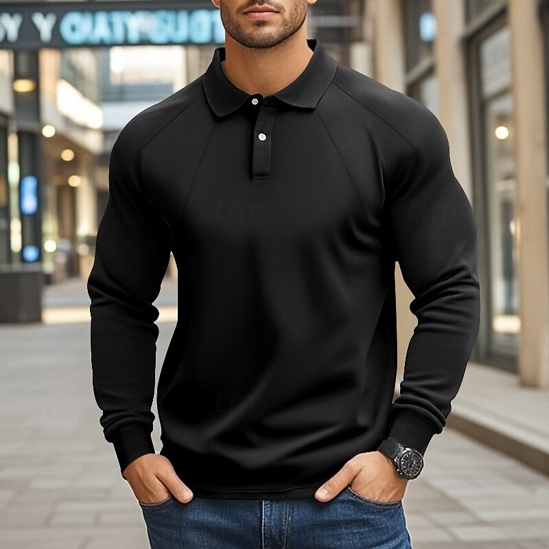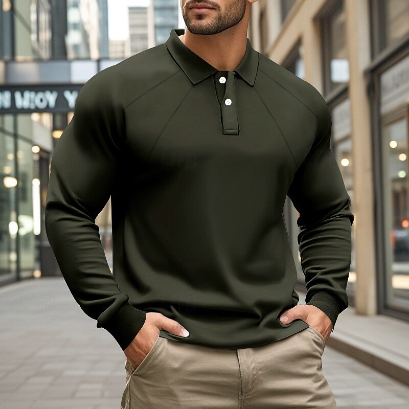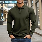 More information about Men's Golf Shirt Golf Polos Shirts Work Casual Lapel Long Sleeve Basic Modern Plain Buttons Spring Fall Regular Fit Black White Khaki Light Grey Army Green Golf Shirt